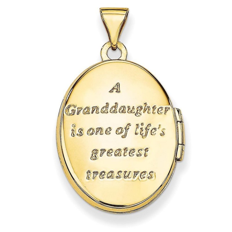 Medaglione ovale a forma di nipote da 21 mm in oro giallo 14k con rodio - 1,1 grammi in oro giallo 14k - Include confezione regalo - Larghezza dell'articolo: 17 mm - Lunghezza dell'articolo: 28,2 mm - Lunghezza della cauzione: 5,7 mm - Larghezza della cauzione: 4 mm - Finitura: lucida - Caratteristica: si apre - Caratteristica 2: reversibile - Caratteristica 3: cava - Incisione: non consigliata - - Questo articolo non include una catena