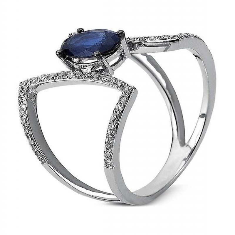 Anello Luna Creation - Oro bianco 14 carati con diamanti e zaffiro da 0,23 ct - 1B684W4535-1-53